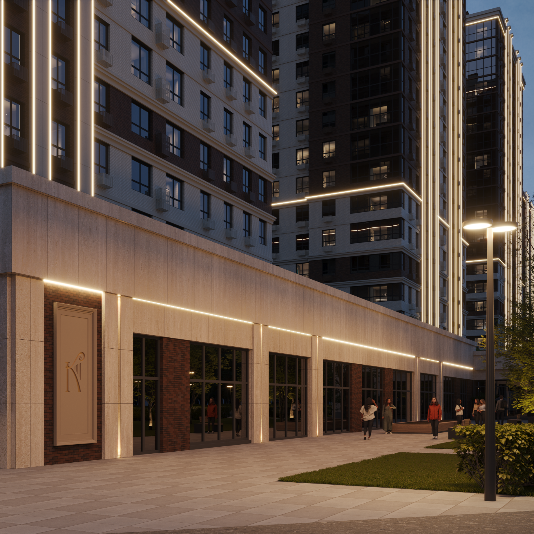 Современная инфраструктура сочетается с элементами искусства и культуры, создавая уникальную атмосферу. На территории предусмотрены: